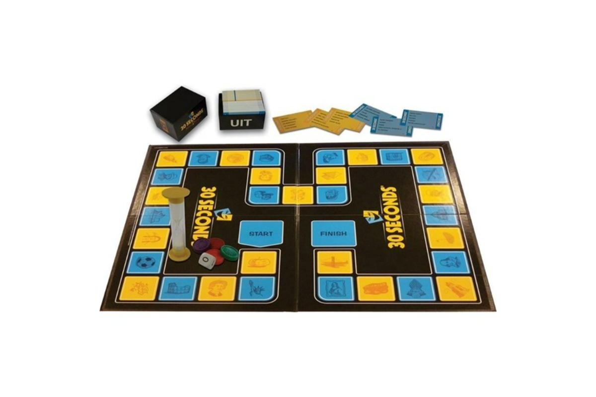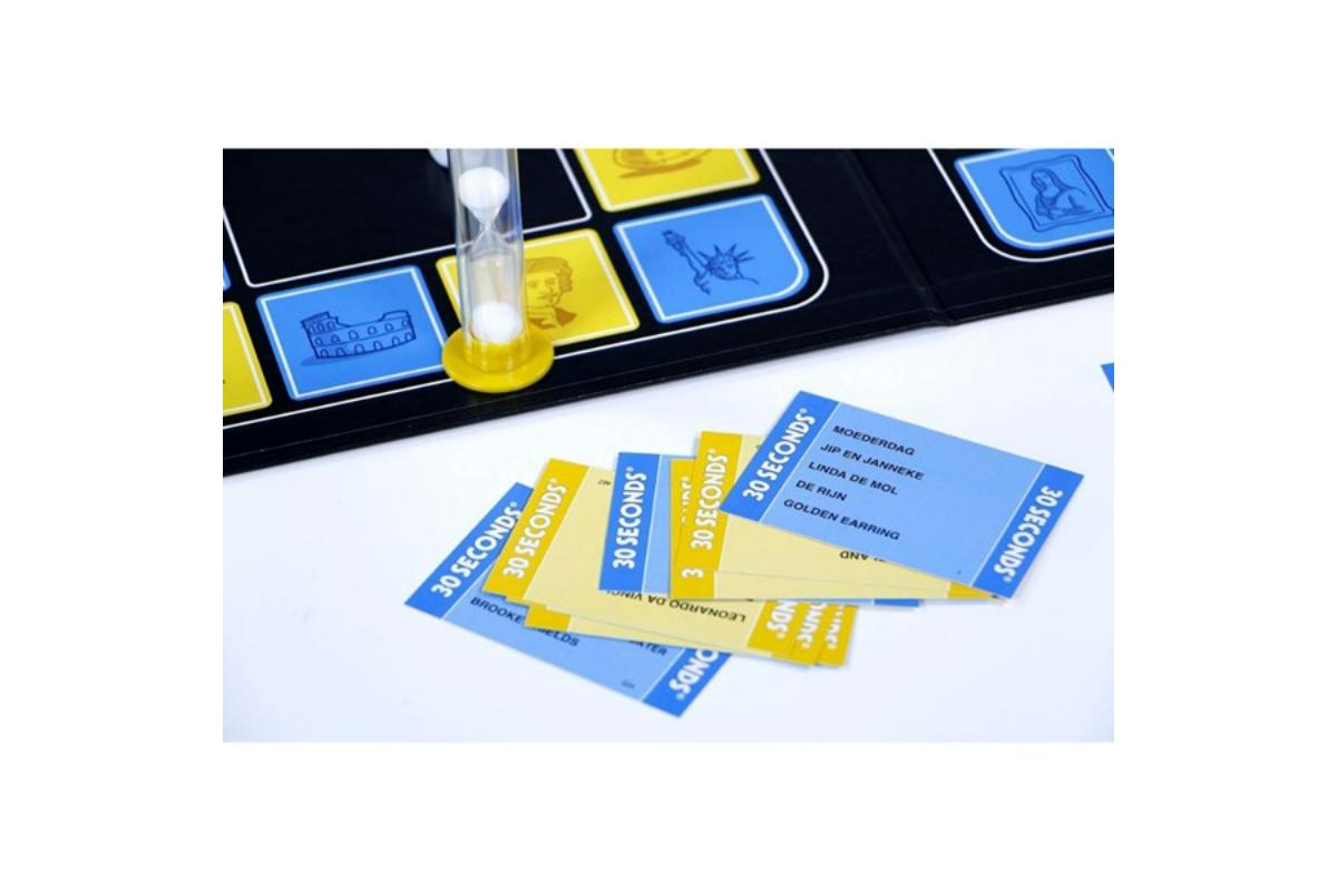 - Verpakkingsinhoud: 240 kaarten, 1 kaartenhouder, 1 speelbord, 1 zandloper, 1 dobbelsteen, 4 pionnen, de spelregels