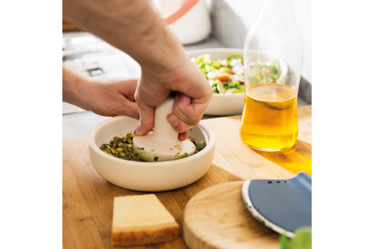 Geef je zelfgemaakte gerechten wat extra pit met versgemalen komijn, oregano, tijm, … De brede basis van de stamper optimaliseert het contactoppervlak met de mortier voor een maximum aan smaken en aroma's. De mooie vijzel is bovendien ideaal om je fijngemalen kruiden op tafel te zetten en iedereen zijn maaltijd naar eigen smaak te laten kruiden.