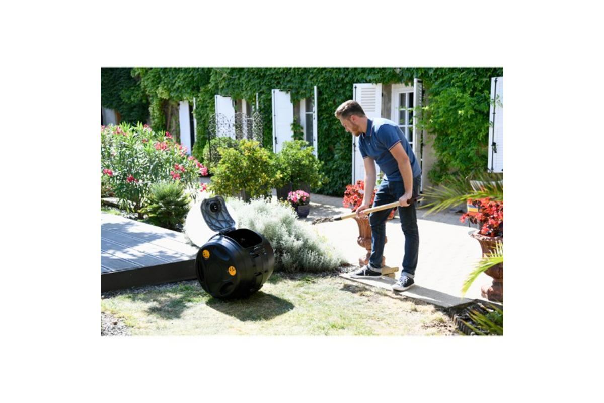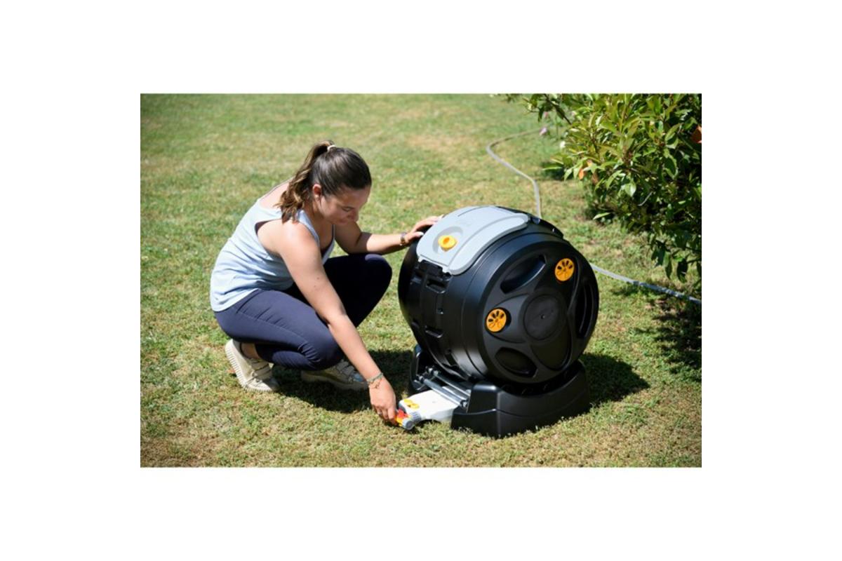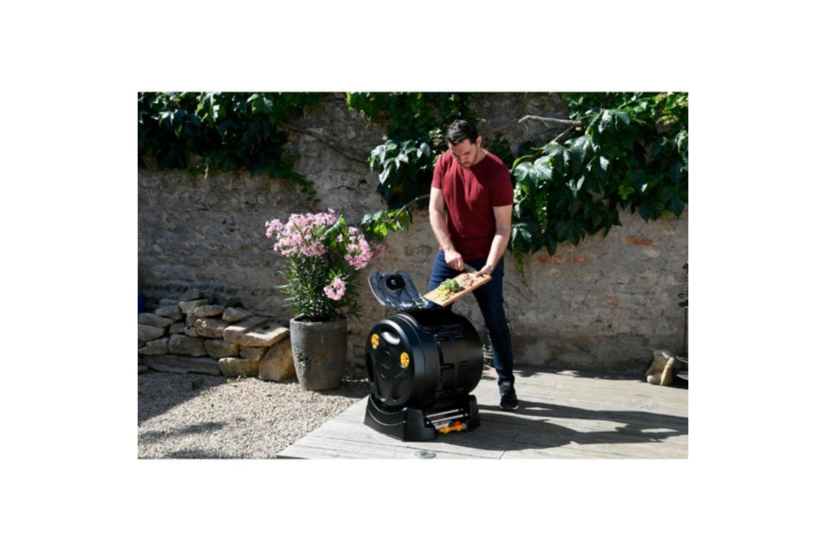 De Easymix 2 in 1 Tuimelcomposter beschikt over een gesloten trommel om insecten en nare geurtjes te vermijden met een inhoud van 100 l container (effektieve inhoud 75 liter, 25 liter vrije ruimte benodigd om het mixen mogelijk te maken). De trommel is geplaatst op een basis met soepel rolsysteem om de container moeiteloos te kunnen draaien met behulp van de handgrepen aan de zijkant van de trommel. De 4 instelbare ventilatieopeningen zorgen voor voldoende zuurstoftoevoer waardoor het composteerproces wordt verbeterd. Dankzij het "tuimelsysteem" wordt het composteerproces aanzienlijk versneld, van 6 maanden bij een standaard composter, tot slechts 2 maanden.