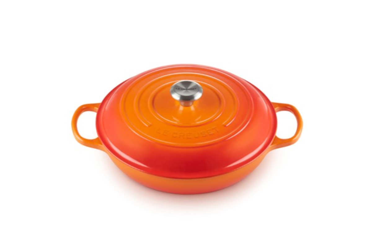 De Le Creuset campagnard ronde Braadpan 30 cm is zeer geschikt voor het maken van stoofpotten en roerbakgerechten. De pan geleidt warmte zeer goed, want hij is gemaakt van gietijzer. Hierdoor gaart jouw gerecht gelijkmatig en blijven voedingsstoffen en smaken behouden.