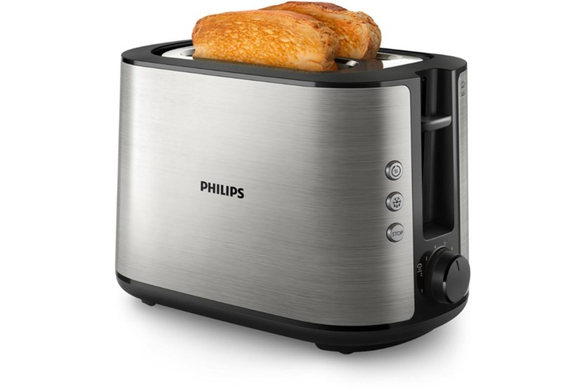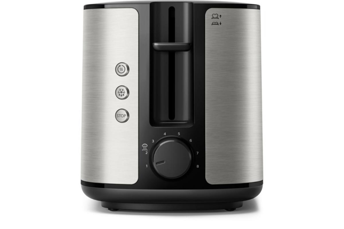 Volledig metalen broodrooster met extra brede sleuf en zelfcentrerende functie voor gelijkmatige bruining ongeacht de dikte van het brood. Kies uit verschillende bruiningsopties en gebruik de geïntegreerde opzethouder. Zo geniet je van knapperig geroosterd brood, warme gebakjes en afgebakken broodjes.